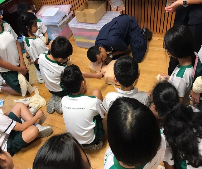 The objective of the training was to equip the pupils with essential emergency preparedness skills and knowledge to better prepare them for emergencies that may occur. During the training, students were introduced basic First Aid as well as CPR-AED skills. Students also learnt about general fire safety tips and the preventive measures in the event of a fire.