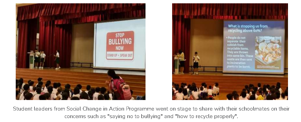 The teachers of the student leadership team, Miss Mary Chia, Miss Lim Huey Ling, Miss Leong Bao Ru, Mdm Chen LiFen, Mdm Huda and Mr Liu Huaqing organized and conducted a workshop for all P3 and P5 monitors. They engaged them through role-play so that they could better understand their role as a class monitor. The class monitors shared that they had learnt the skills to manage their peers.